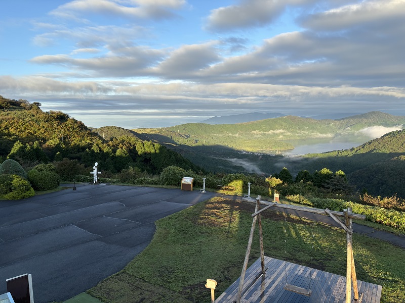 手前には「箱根のブランコ」が見切れてますが、朝早すぎて誰も乗っていませんでした。ぼっちドライブだったので、今回乗るのはやめておきました。